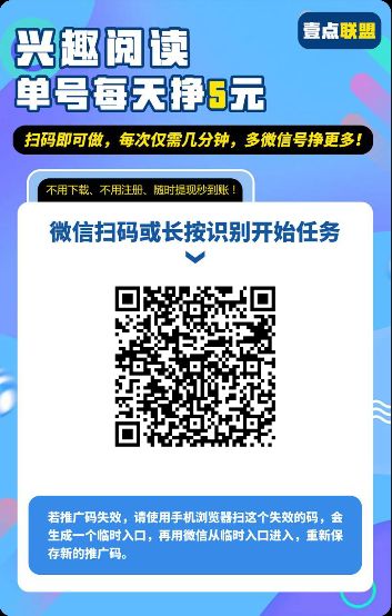 壹点联盟阅读平台采用的是微信小程序的赚钱模式,无需专门下载APP。只要用微信扫码登录,就能开启阅读文章赚钱之旅。此外,这个平台还有视频号关注和公众号关注的任务,这有助于大家赚取更多收益。在壹点联盟通过微信登录之后,观看推荐文章可以获取积分,这些积分能够兑换现金并提现,赚钱就是如此轻松容易。但是要注意,阅读过程中不要中途退出阅读活动,如果阅读中断了,可以继续识别之前的二维码再次进入。要是出现阅读无效或者受限的情况,是没有办法解除限制的,只能等待其自行恢复。