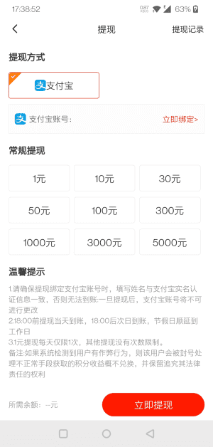 5. 提现便捷,门槛超低